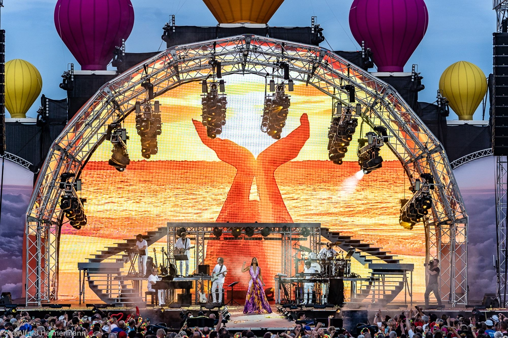 Ein frohes Farbenspiel bot Andrea Berg ihren Fans in diesem Sommer. Unterstützt hat sie dabei die Media Resource Group. Zum Auftakt spielte die beliebte Schlagersänger drei Shows in Folge in ihrer Heimat Aspach. Nicht weit von unserem Hauptsitz in Crailsheim und somit auch für die MRG eine Art Heimspiel.